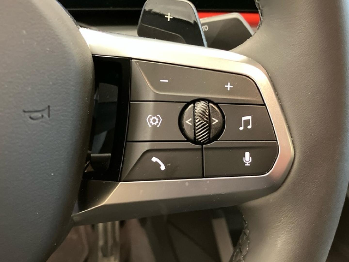 - Volante multi-función en aluminio y cuero sintético ajustable en altura y en profundidad controles táctiles